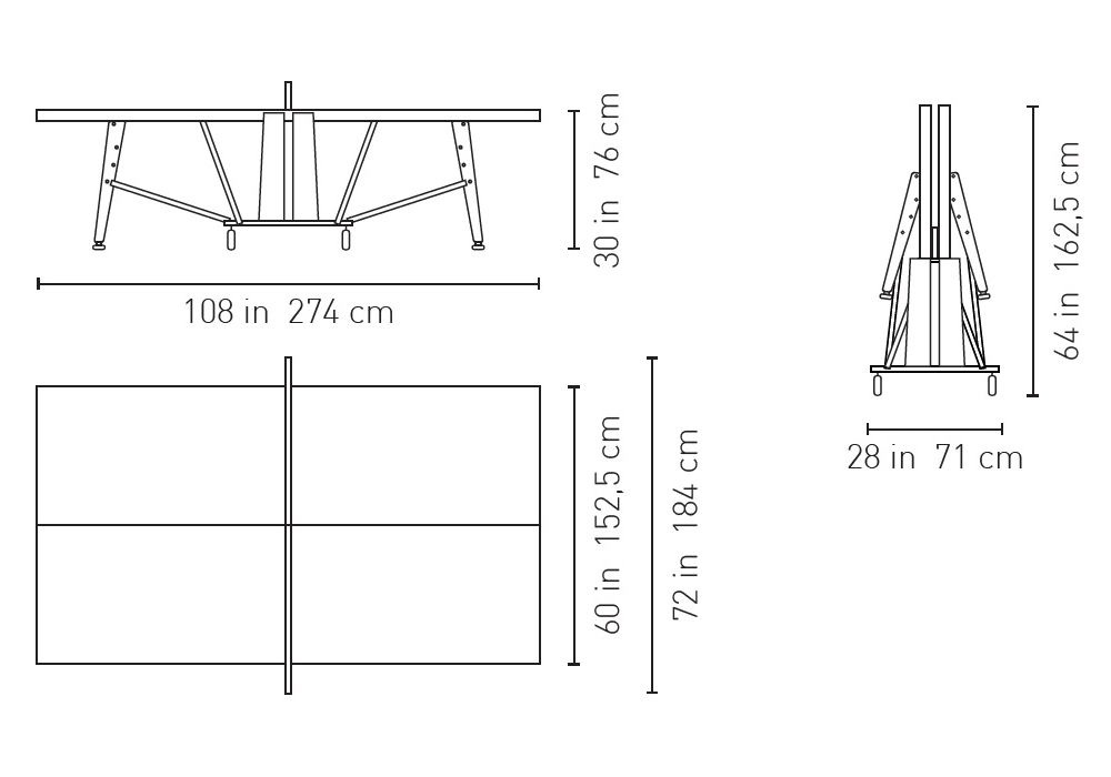 | Dimensions | L 274 x W 152,5/184 x H 76 cm (Ouvert); L 71 x W 152,5/184 x H 162,5 cm (Fermé) |