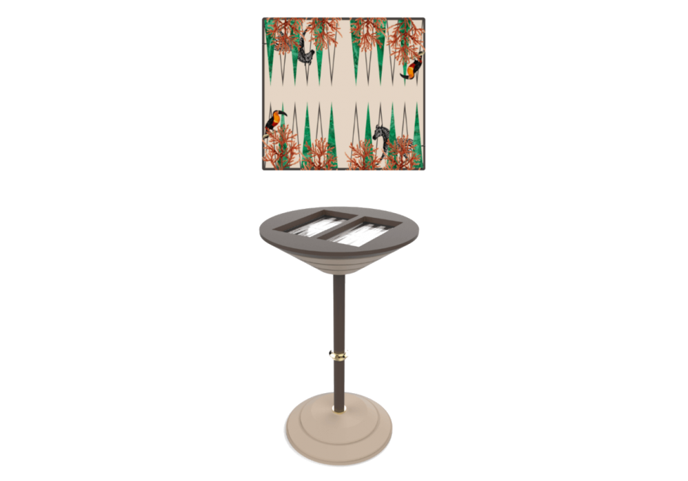 Backgammon board conçue par Vismara Design est une table haute avec jacquet.