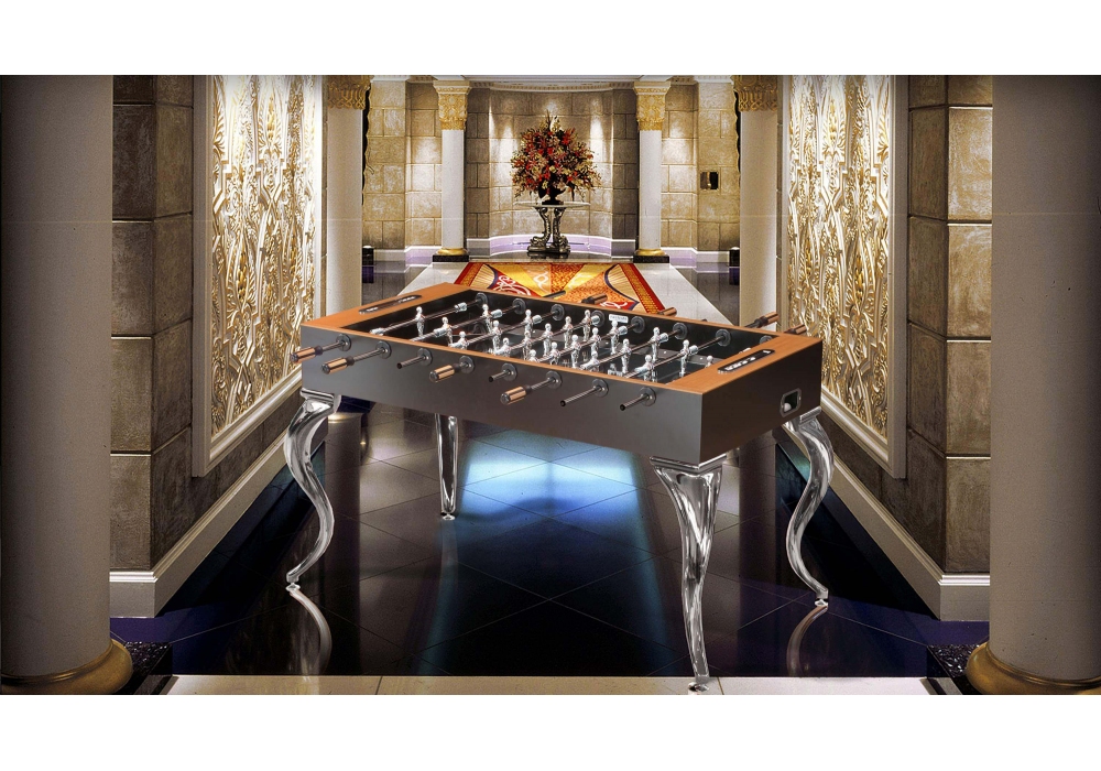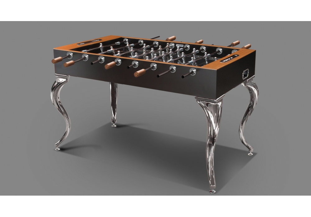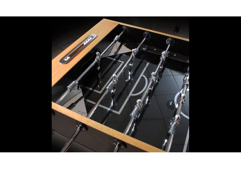 Opera Rovere conçu par Cavicchi est un baby-foot réalisé avec une planche supérieure en chêne naturel massif et peut être personnalisé avec un choix de laques.