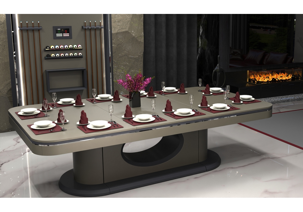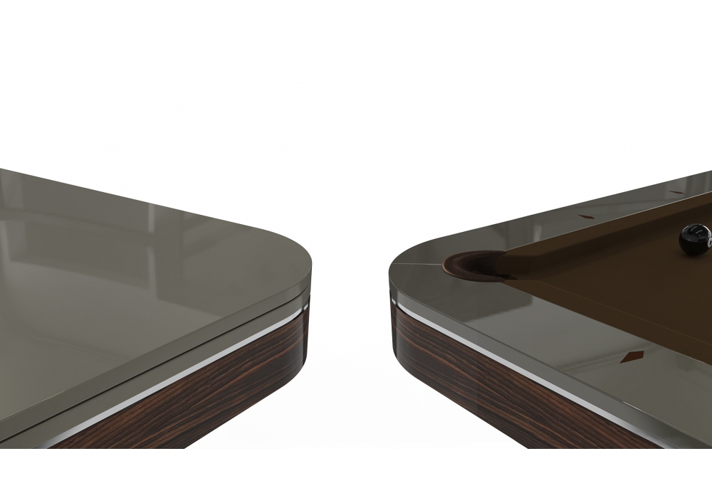 Roma conçue par Cavicchi est une table de billard disponible sur demande en différentes finitions et tailles avec revêtement en trois parties dans la même finition. Dimensions intérieures du terrain de jeu 220 x 110 cm; Dimensions extérieures 256 x 146 cm.