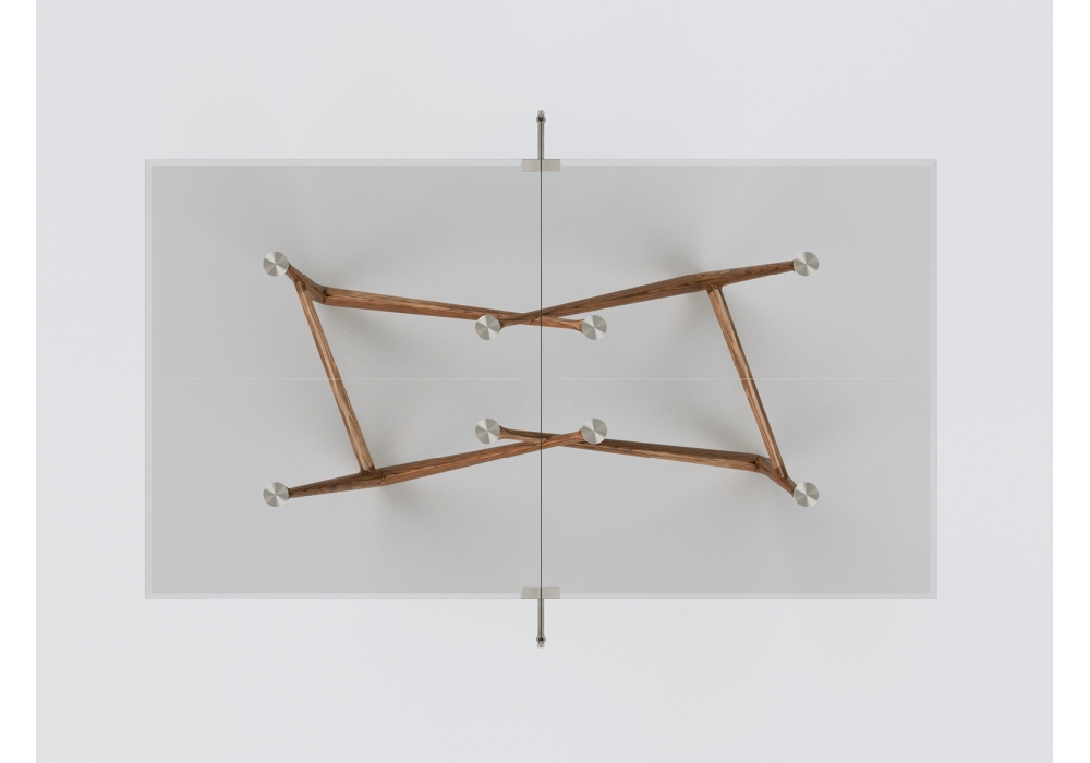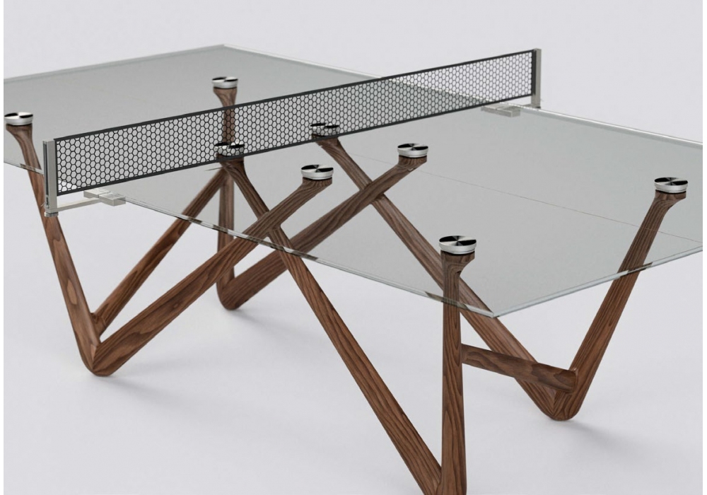 Effetto 71, conçu par Adriano Design Engineered by Teckell® R&D Department, est un table de ping pong composé d'un plateau en verre et d'une structure en noyer américain massif.