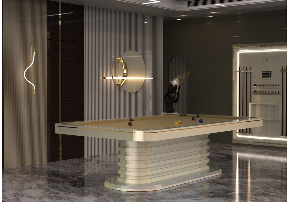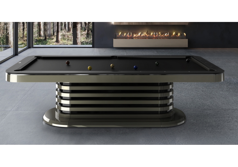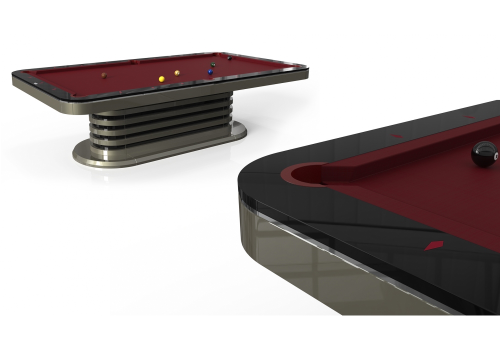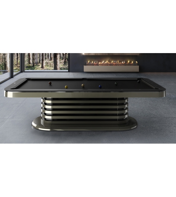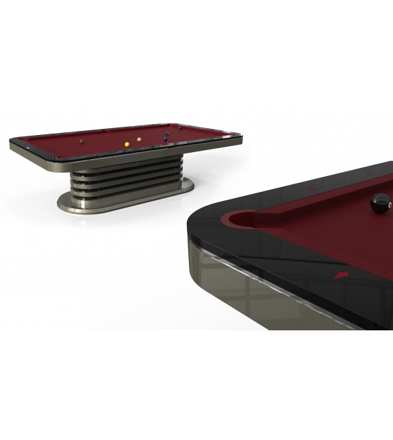 Grecale conçue par Cavicchi est une table de billard disponible en différentes finitions et tailles. Dimensions intérieures du terrain de jeu de 220 x 110 cm ou 254 x 127 cm.