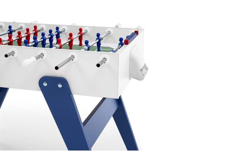 Cross conçu par Basaglia + Rota Nodari pour Fas Pendenza est un baby-foot quadrangulaire avec un terrain de jeu en verre trempé à haute résistance. Le meuble est en MDF recouvert de stratifié plastique blanc. Les pieds sont en contreplaqué de bouleau peint avec pieds réglables. Cross est disponible en différentes finitions et versions de manche, fourni avec 5 boules de jeu blanches.
