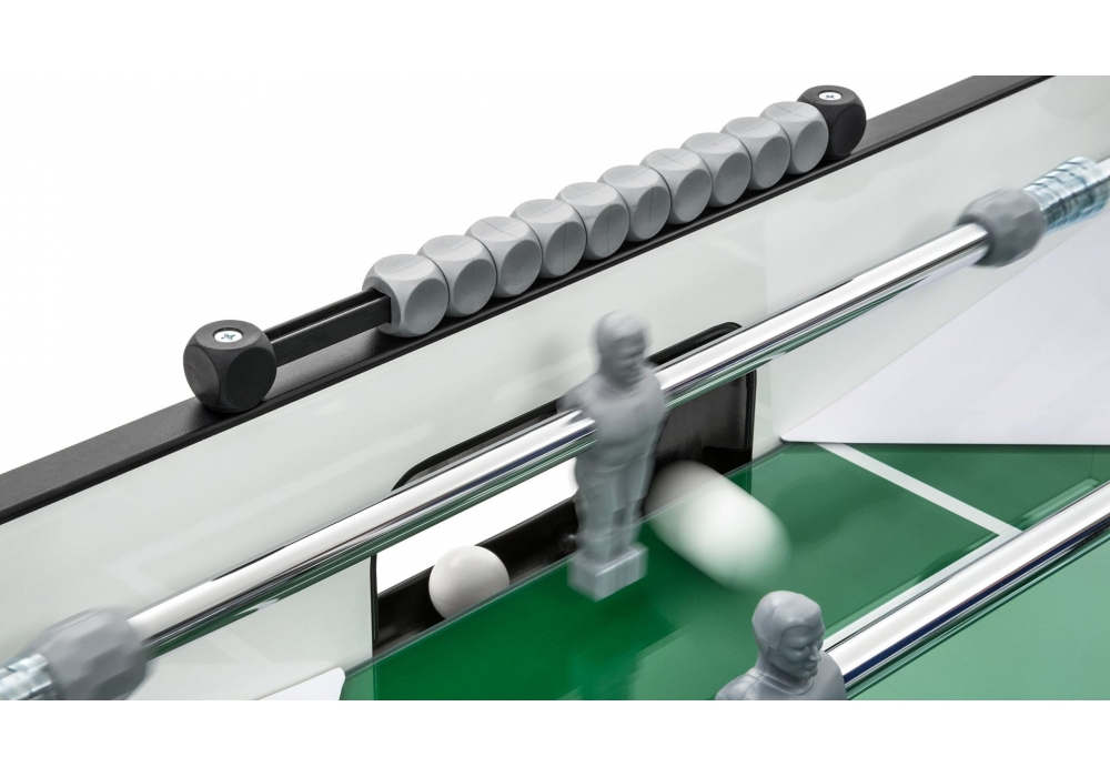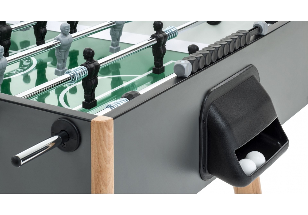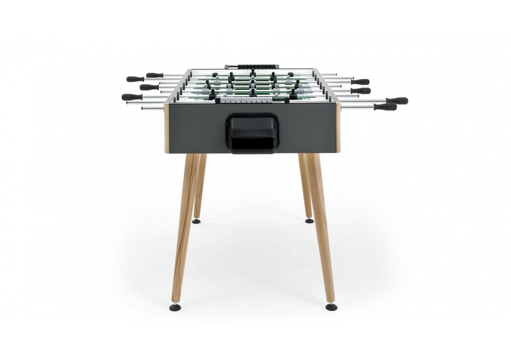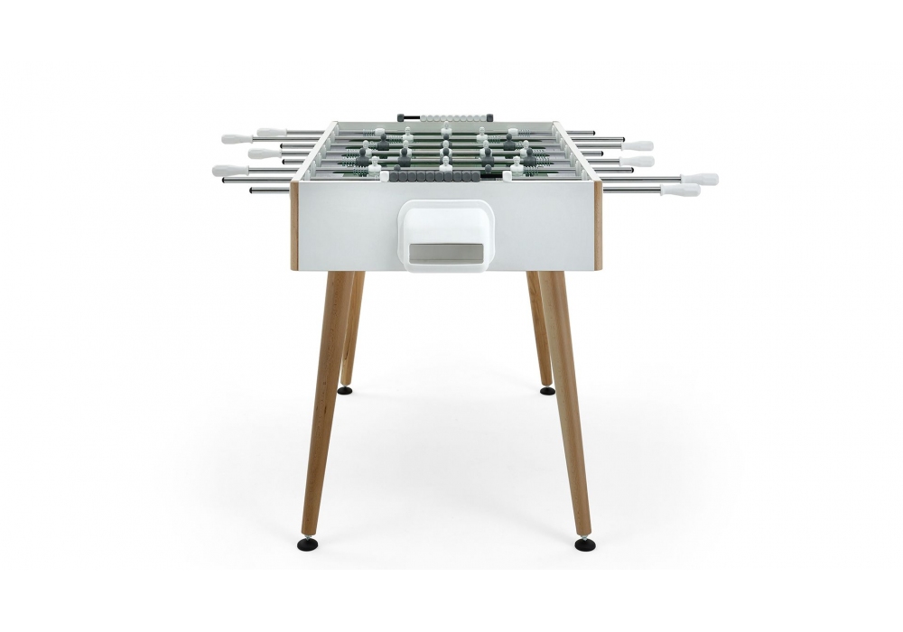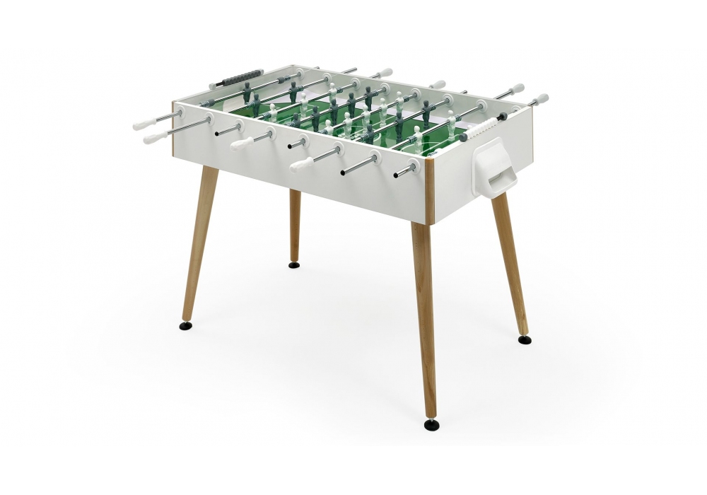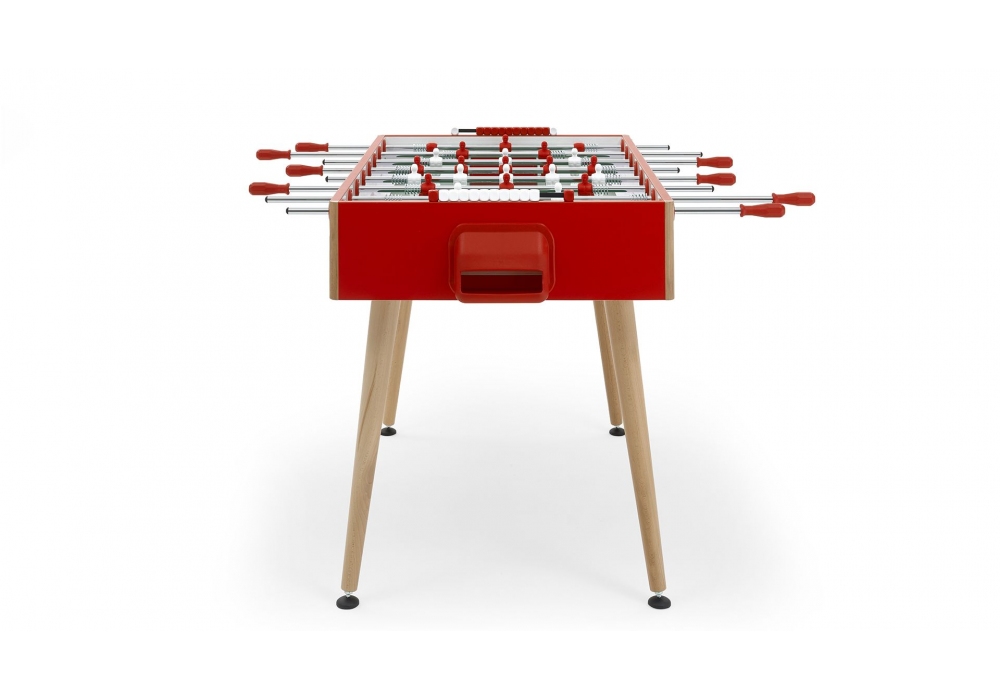 Flamingo conçu par Basaglia + Rota Nodari pour Fas Pendenza est un baby-foot quadrangulaire avec terrain de jeu en verre trempé très résistant. Les meubles sont en bois recouvert de stratifié plastique coloré. Les pieds sont en bois de hêtre avec des pieds réglables. Flamingo est disponible en différentes finitions et versions de manche, fourni avec 5 boules de jeu blanches.