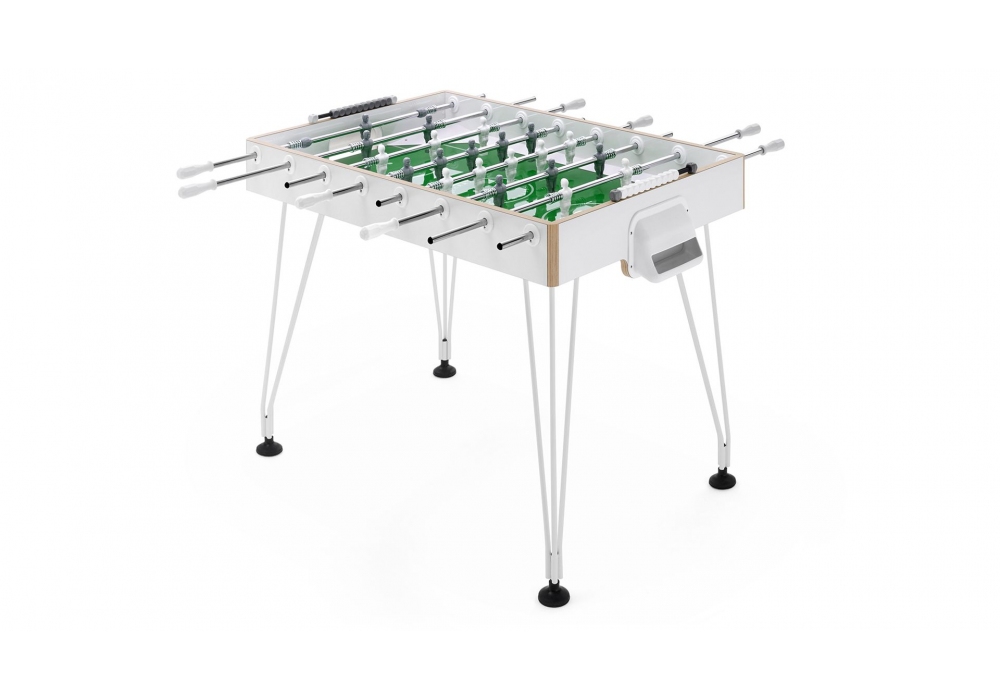 Apollo 20 conçue par Basaglia + Rota Nodari pour Fas Pendenza est un baby-foot d'extérieur quadrangulaire avec terrain de jeu en verre trempé très résistant. Le mobilier est fabriqué en bois d'extérieur recouvert de stratifié plastique coloré avec coin et bord en bois naturel. Les pieds sont structurés par des tiges en métal peint avec des pieds réglables. Apollo 20 est disponible en différentes finitions et versions de manche, fourni avec 5 boules de jeu blanches.