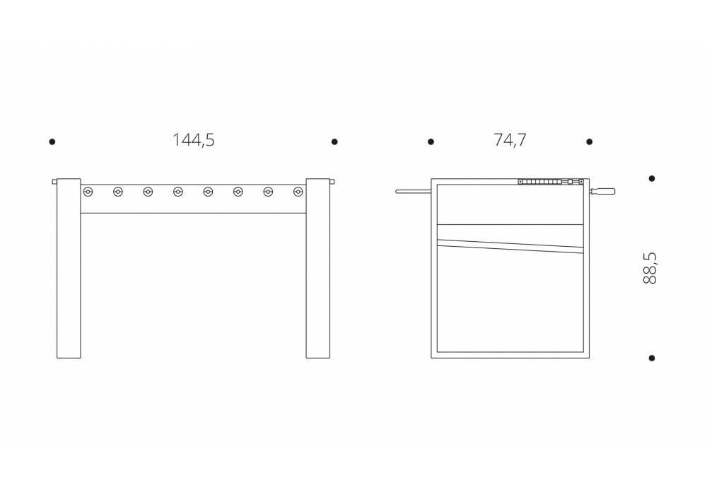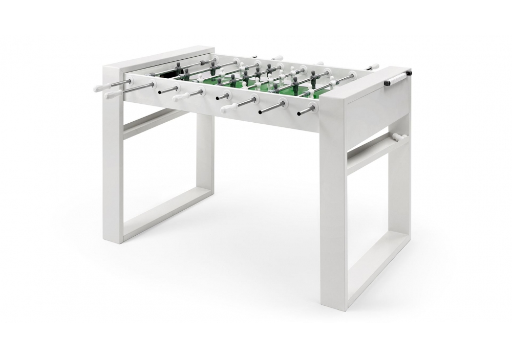 Tour '65 conçue par Basaglia + Rota Nodari pour Fas Pendenza est un baby-foot de forme quadrangulaire avec un terrain de jeu en verre trempé à haute résistance. Les meubles sont en bois recouvert de stratifié plastique coloré. Les pieds sont de forme quadrangulaire en caisson en métal peint. Tour '65 est disponible en différentes finitions et versions de manche, fourni avec 5 boules de jeu blanches.