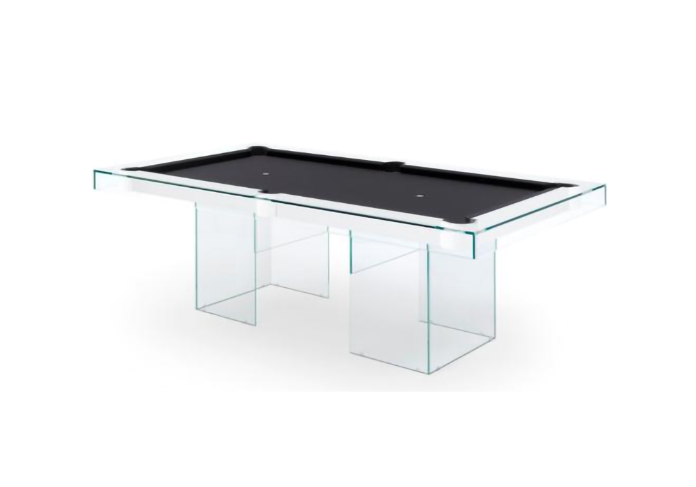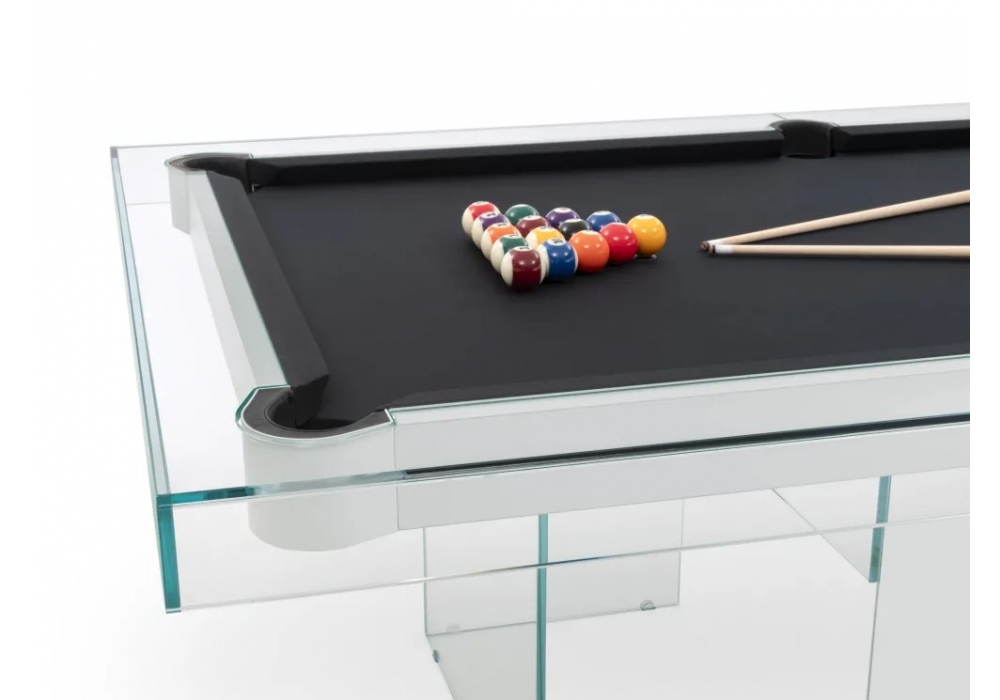 Shadow conçue par Basaglia + Rota Nodari pour Fas Pendenza est une carambole de forme quadrangulaire avec un terrain de jeu en bois laqué blanc, une pièce unique du dessus du terrain de jeu en ardoise. La structure périmétrique et les pieds sont entièrement réalisés en verre transparent. Shadow est livré avec 4 nervures ; jeu de boules numérotées Ø 57 ; boîte à plâtre; triangle pour balles; brosse.