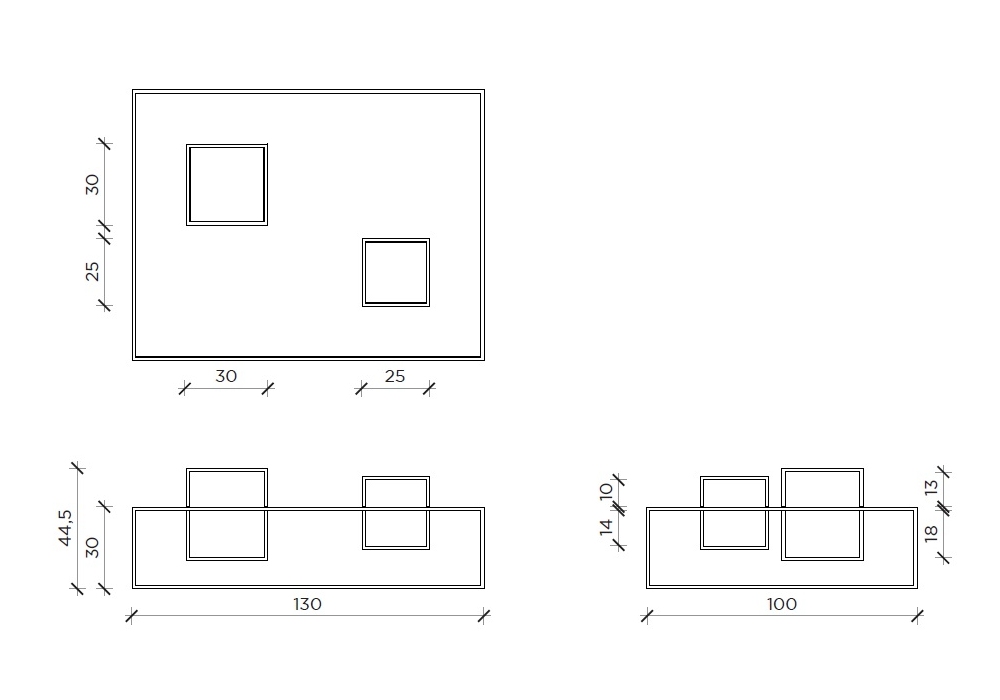| Dimensions | 90 x 90 x H 55 cm; 130 x 100 x H 45 cm. |