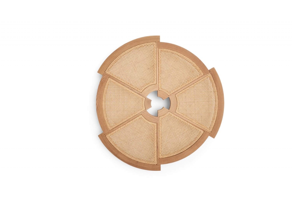 529 Rio conçue par Charlotte Perriand pour Cassina est une table basse dotée d'un plateau en chêne massif avec une finition mate transparente et un tressage à la main en paille de Vienne, ou en marbre. Le piètement en chêne massif est également finition mate transparente.