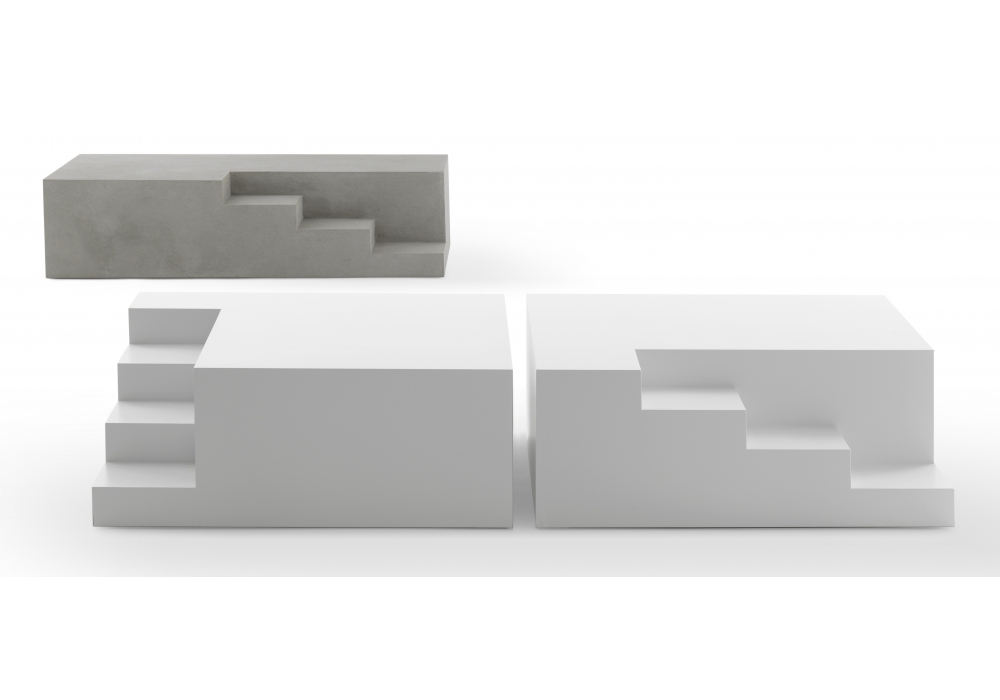 Mezzanino conçue par Mist-o pour Mogg est une table basse en bois disponible en couleur RAL 9016 ou en finition béton. Disponible en différentes dimensions.