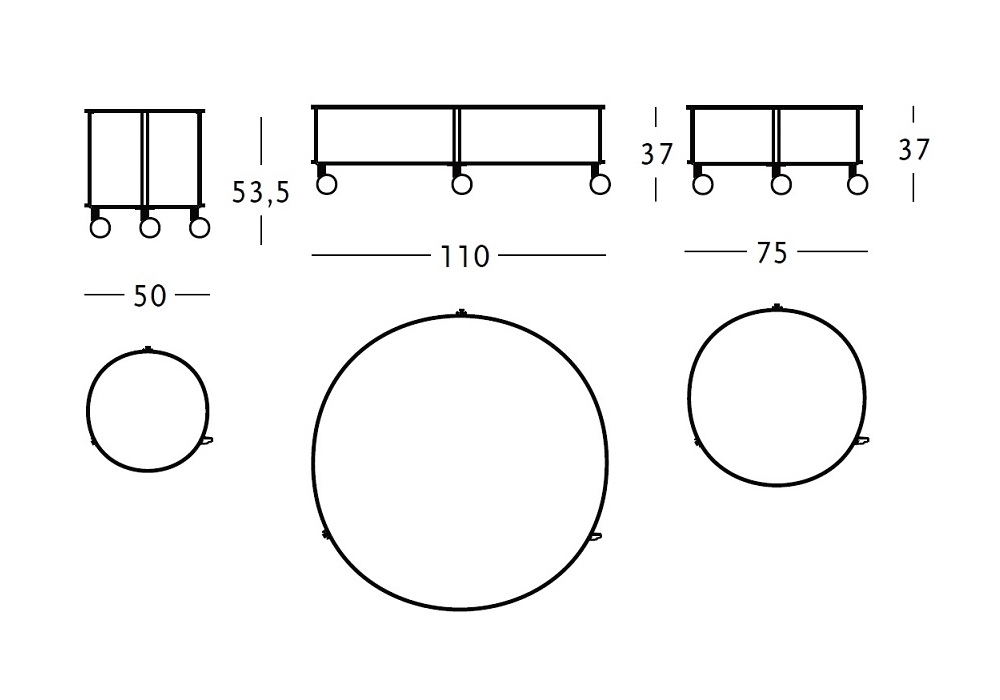 | Dimensions | Ø 50 X H 53,5 cm; Ø 75 X H 37 cm; Ø 110 X H 37 cm; |
