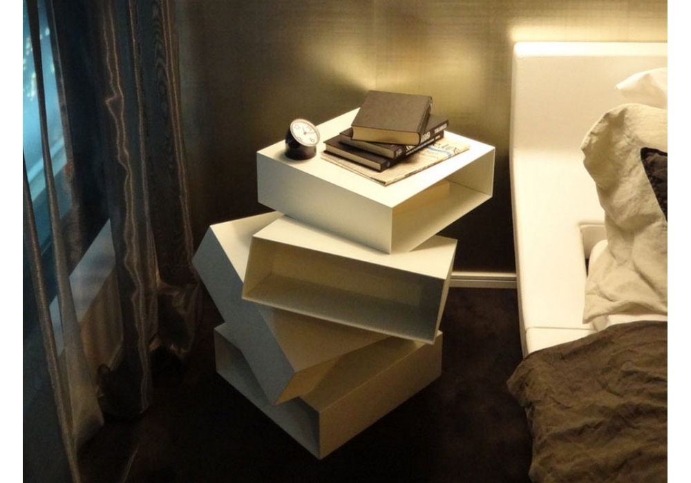 Balancing Boxes is a small table designed by Front for Porro. Balancing Boxes is a small table consisting of a series of irregularly overlapping white or black painted metal or in wood (eucalyptus, lauro preto, palissandro santos, ted gum and tineo finishings) boxes, as though balancing in space. Inclinations, interconnections and a multifaceted image, giving different sensations as we look at it from different angles.