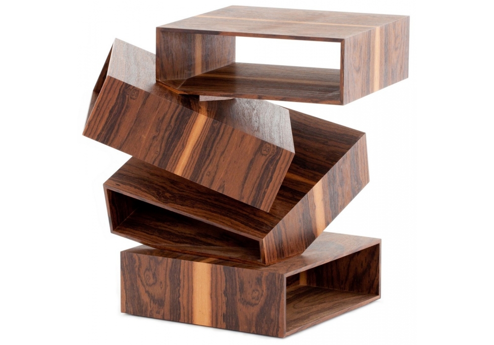 Balancing Boxes is a small table designed by Front for Porro. Balancing Boxes is a small table consisting of a series of irregularly overlapping white or black painted metal or in wood (eucalyptus, lauro preto, palissandro santos, ted gum and tineo finishings) boxes, as though balancing in space.