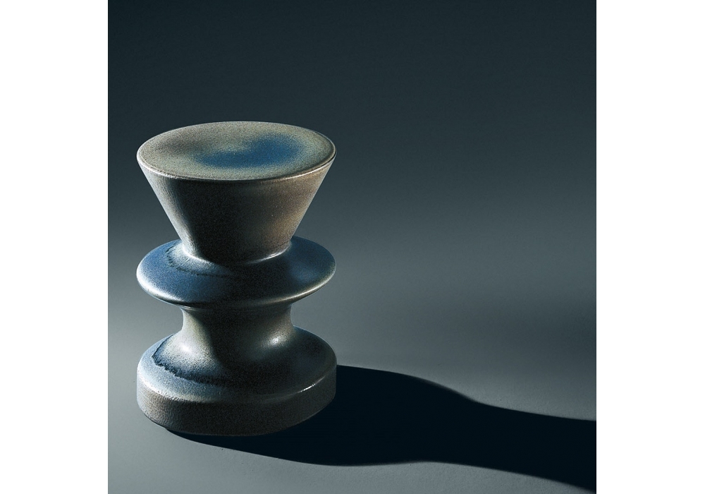 6005 Zeus conçue par Prospero Rasulo pour Zanotta est une petite table réalisée avec une structure en grès cérame fin antigel pour l'extérieur, avec double vitrage manuel à épaisseur contrôlée, cuite à 1250 ° C avec un cycle de traitement de 36 heures, bleu- marron.