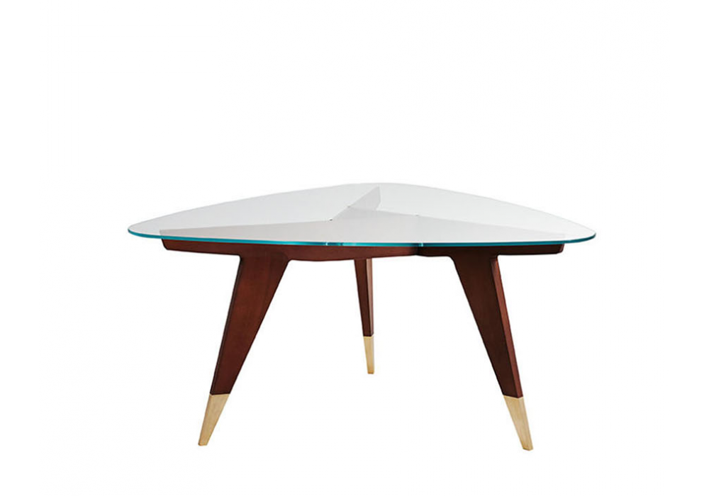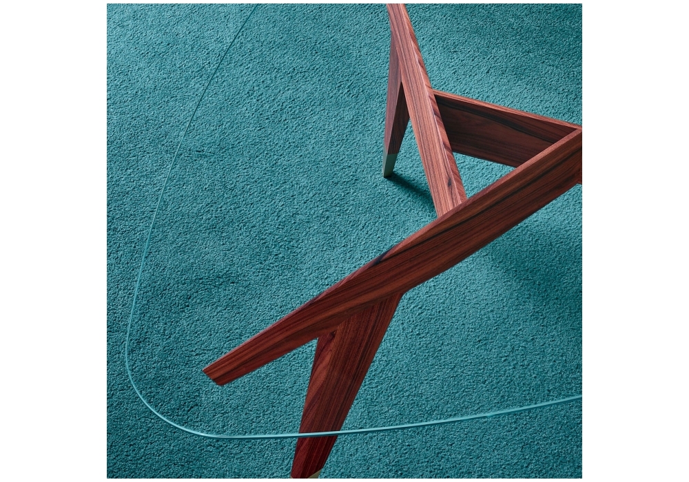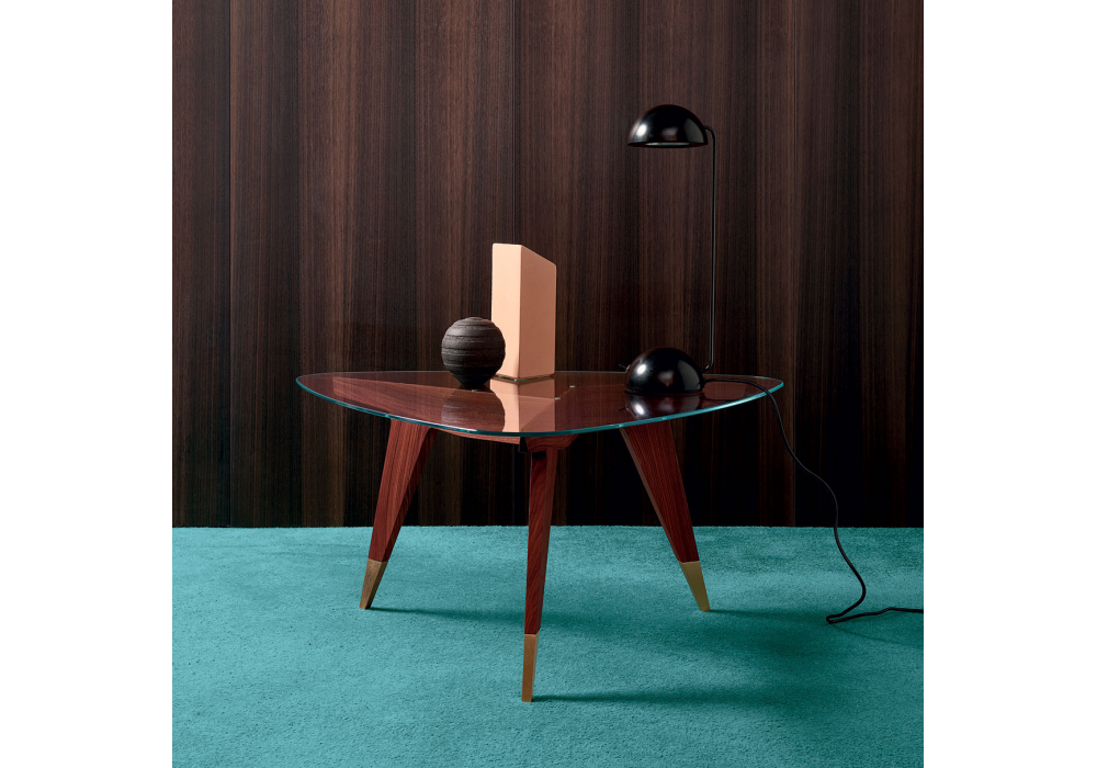 D.552.2 conçue par Gio Ponti pour Molteni&C est une table basse avec structure en palissandre massif et plateau en verre extra-clair. Pieds en laiton brossé.