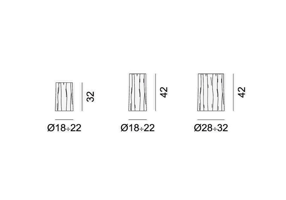 | Dimensions | Log S_ Ø (min 18 - max 22) cm x H 32 cm; Log M_ Ø (min 18 - max 22) cm x H 42 cm; Log L_ Ø (min 28 - max 32) cm x H 42 cm. |