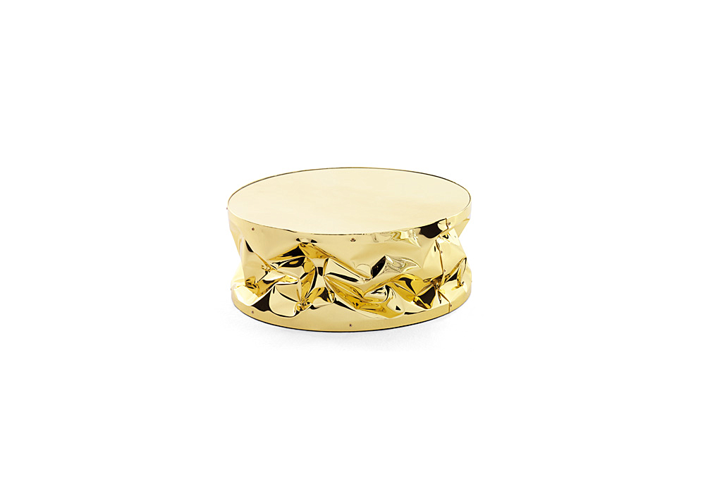 Tab.u conçue par Bruno Rainaldi pour Opinion Ciatti est une table basse sur roulettes, en aluminium froissé à la main avec structure interne en contreplaqué et plateau en miroir. Disponible en différentes finitions et dimensions.