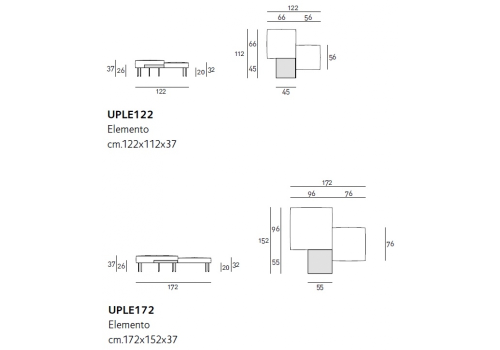 | Dimensions | 122 x 112 x H 37 cm; 172 x 152 x H 37 cm. |