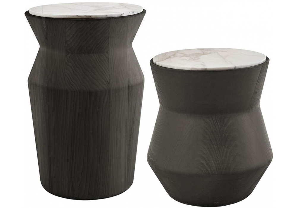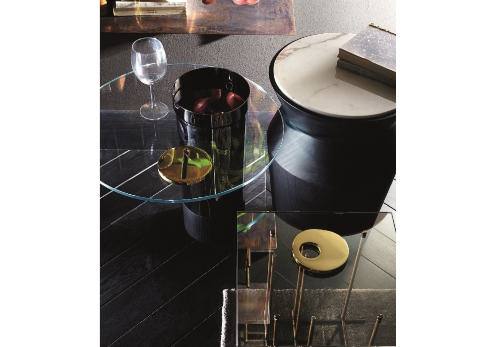 Dama conçue par Studio G&R est une table basse en bois massif laqué noir pore ouvert. Plateau miroité “grigio Italia” fumé. Disponible aussi en miroir “Antique 1”, en marbre Calacatta Vagli Oro ou en marbre Verde Alpi.