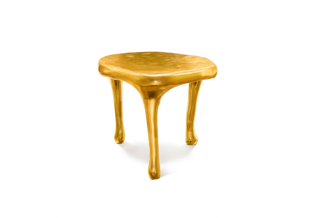 Joy produite par Scarlet Splendor est une table d'appoint moulée en précieux laiton poli.
