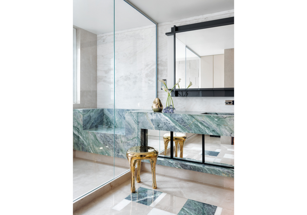 Glee produite par Scarlet Splendor est une table d'appoint à trois pieds en laiton poli et recouverte d'une laque protectrice.