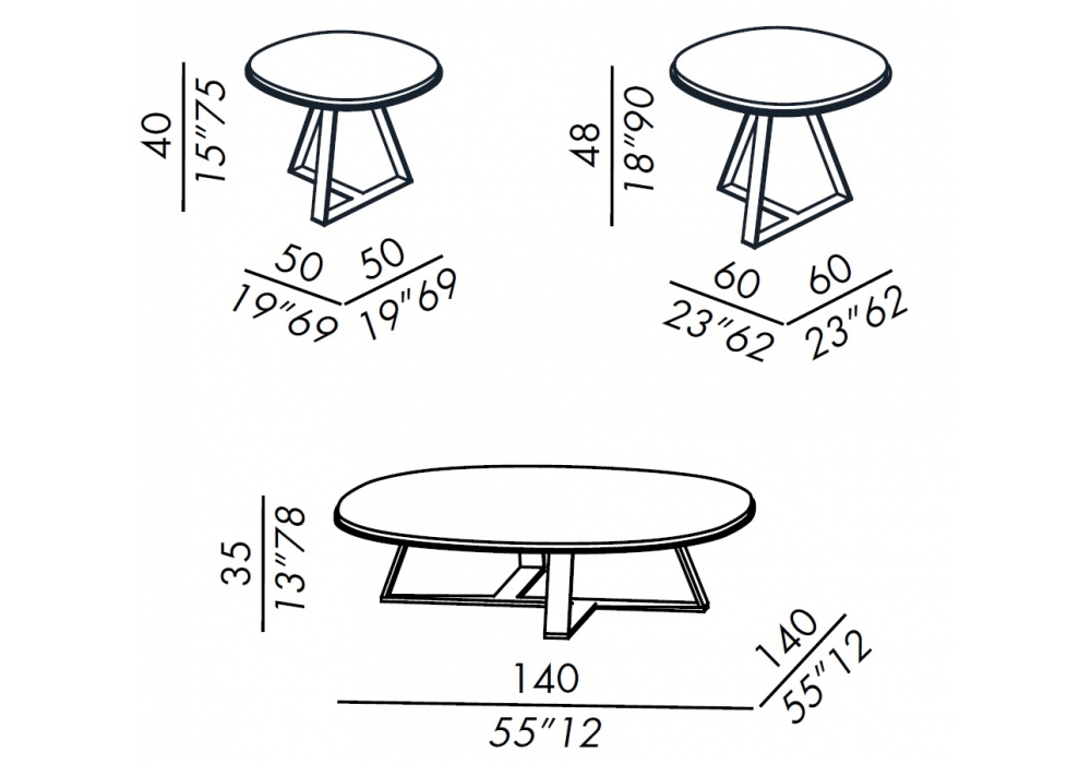 | Dimensions | 50 x 50 x H 40 cm; 60 x 60 x H 48 cm; 140 x 140 x H 35 cm |