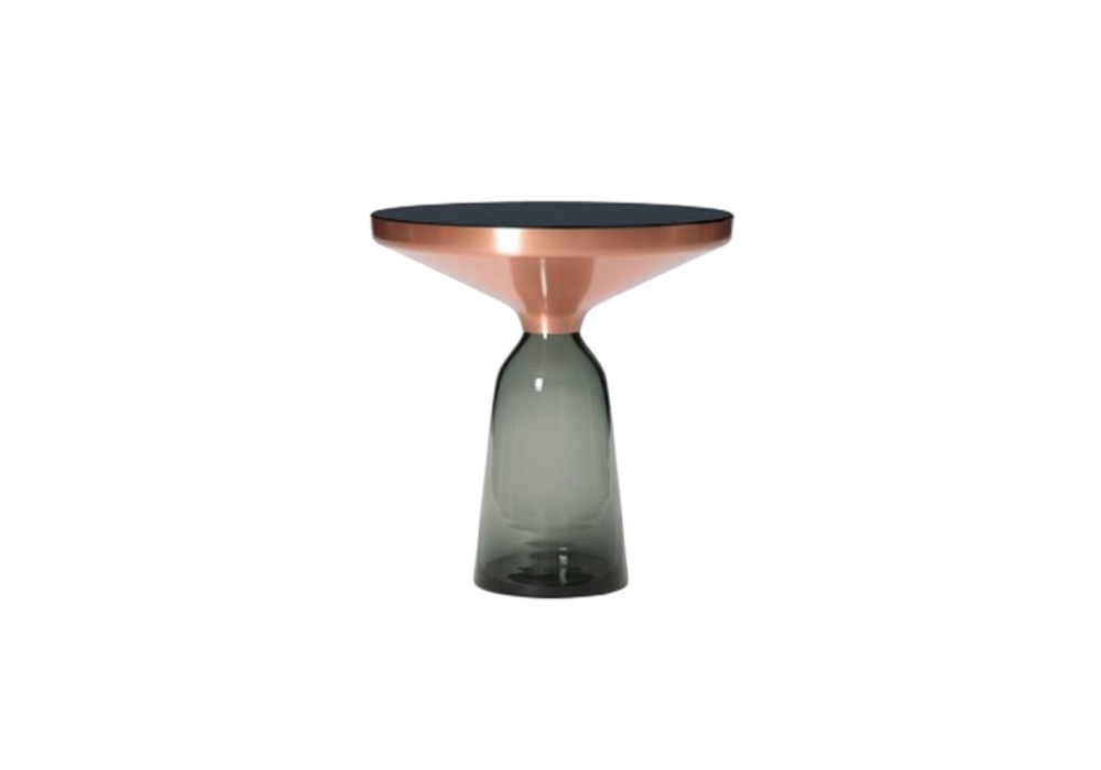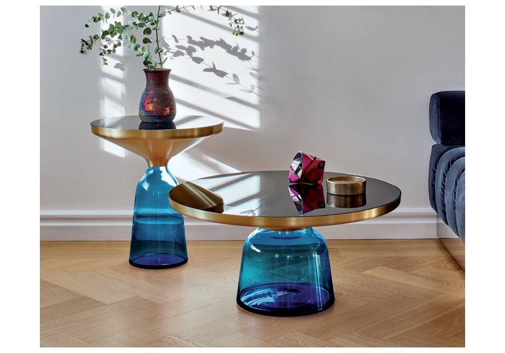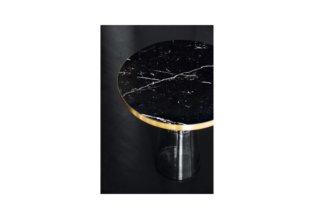 Bell conçue par Sebastian Herkner pour ClassiCon est une belle table d'appoint avec base en verre soufflé disponible en différentes couleurs. La structure qui soutient le plateau de table est en métal. Plateau rond en verre cristal laqué noir ou en marbre. Disponible en différentes finitions.