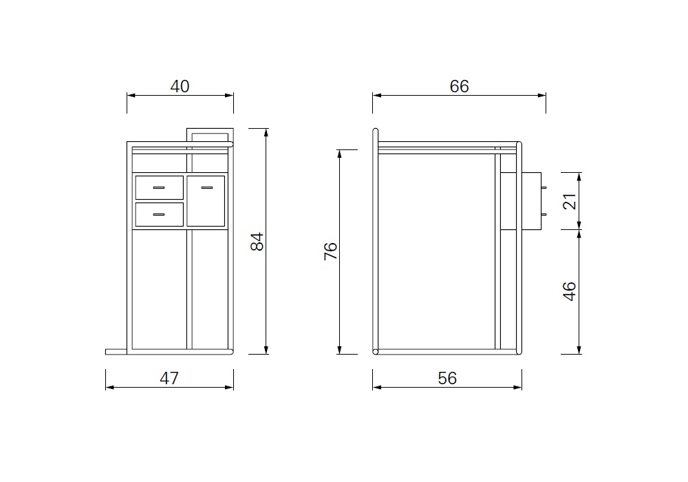 Petite Coiffeuse conçu par Eileen Gray pour ClassiCon est une table de coiffure et de maquillage composée d'un plateau et d'un rangement suspendu laqué brillant, équipé de deux casiers basculants et d'une porte. Structure en tube d'acier chromé. Plateau et rangement en MDF laqué brillant.