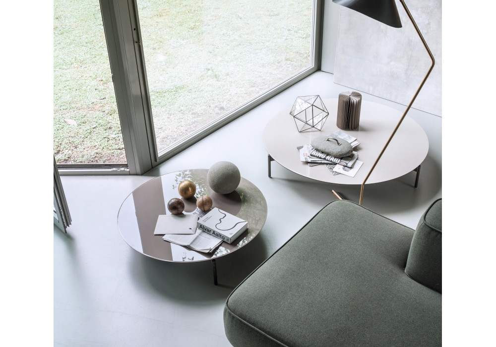 Cruise conçue par Lema est une collection de tables basses avec une structure métallique. Plateau disponible en différentes finitions.