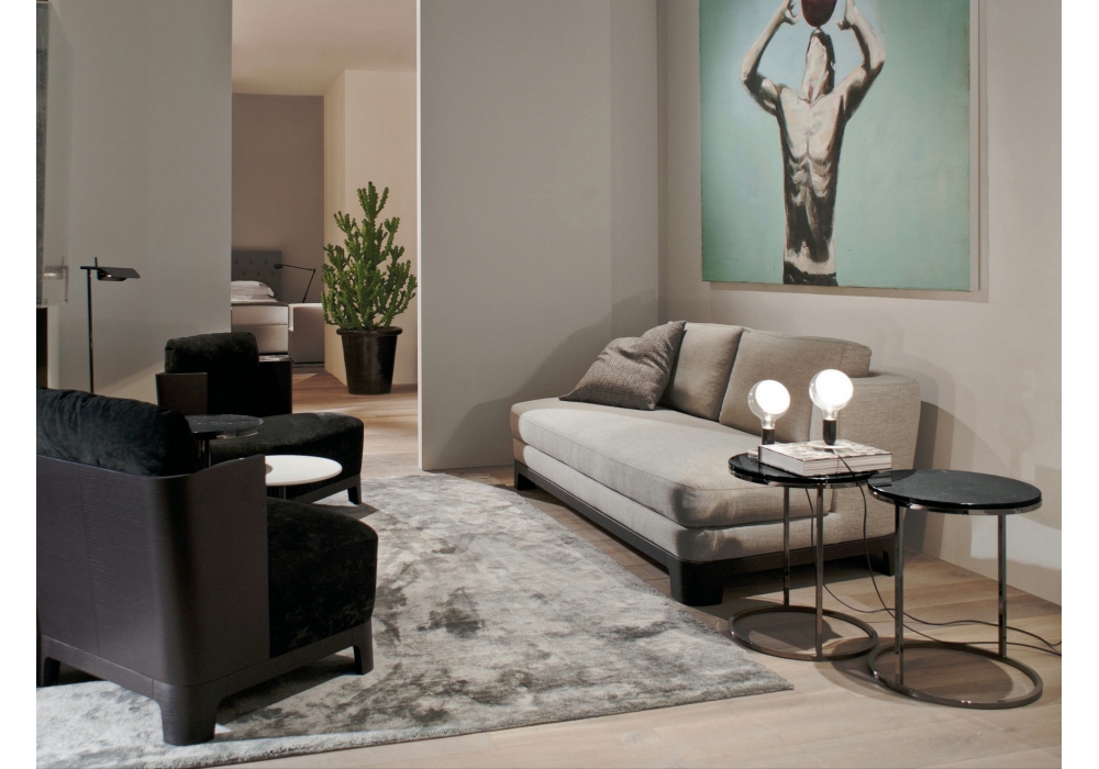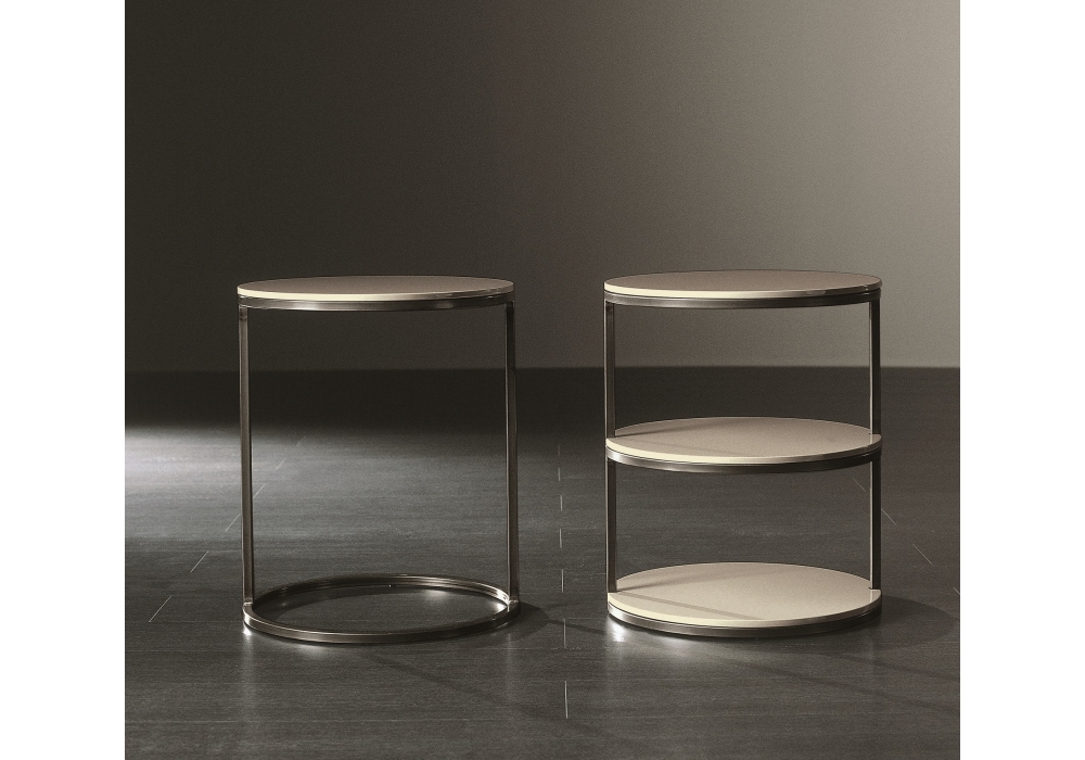 Pek conçue par Andrea Parisio pour Meridiani est une collection de tables d'appoint avec structure en métal. Plateau disponible en placage de chêne teinté, placage en bois composite, laque mate ou brillante, verre, marbre.