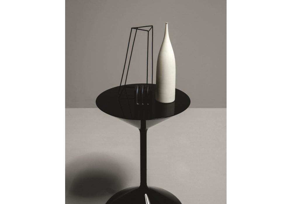 631 Tempo conçu par Prospero Rasulo pour Zanotta est un petite table avec structure en polyuréthane rigide et tige de soutien en acier. Peinture en blanc, noir ou rouge.