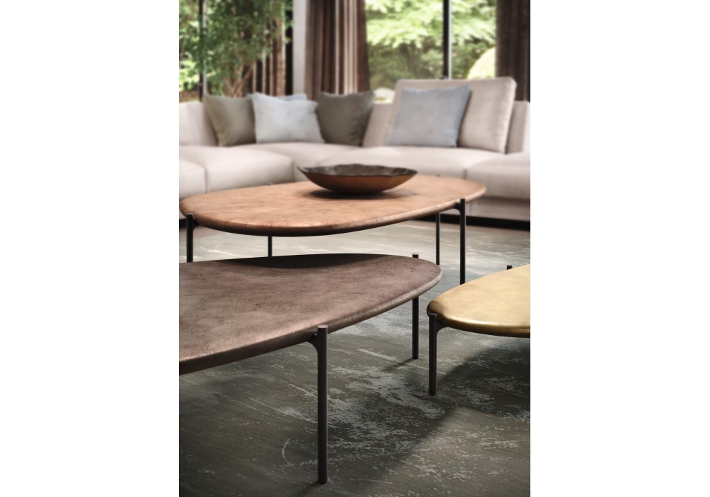 Ishino conçue par Daï Sugasawa pour Walter Knoll est une table d'appoint avec plateau en béton léger avec surface métallisée. Structure en acier disponible dans les finitions suivantes: bronze mat ou noir mat. Existe aussi en 3 tailles.
