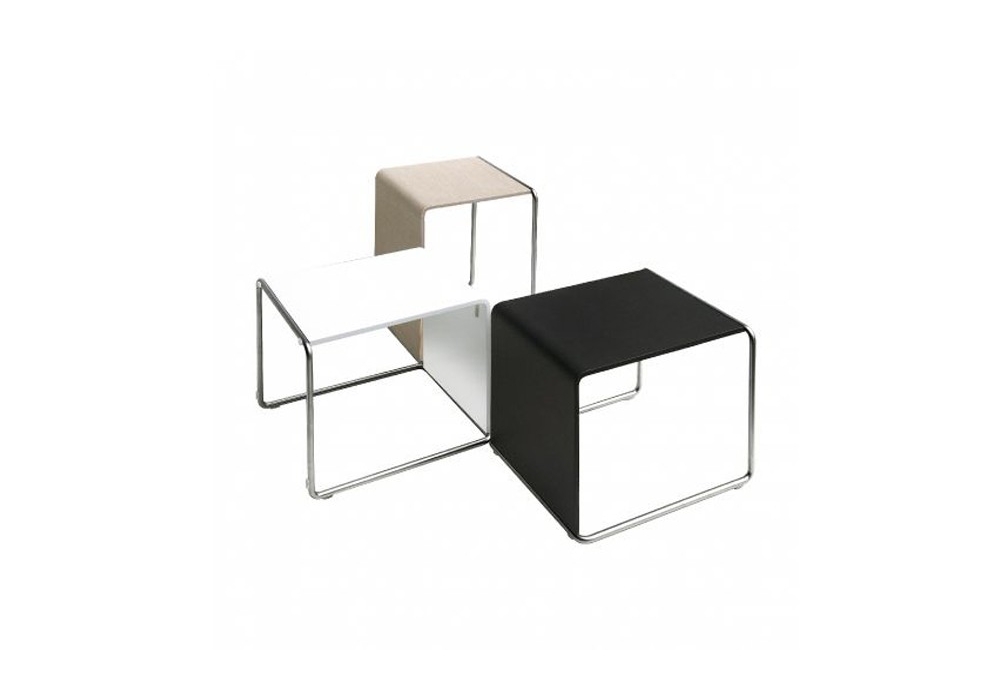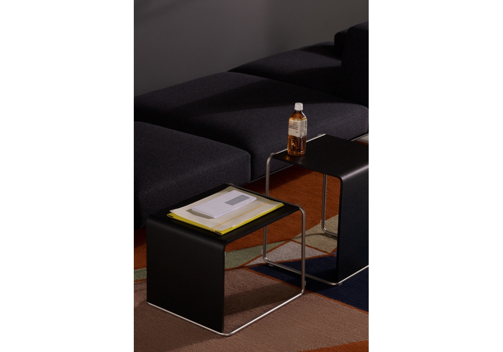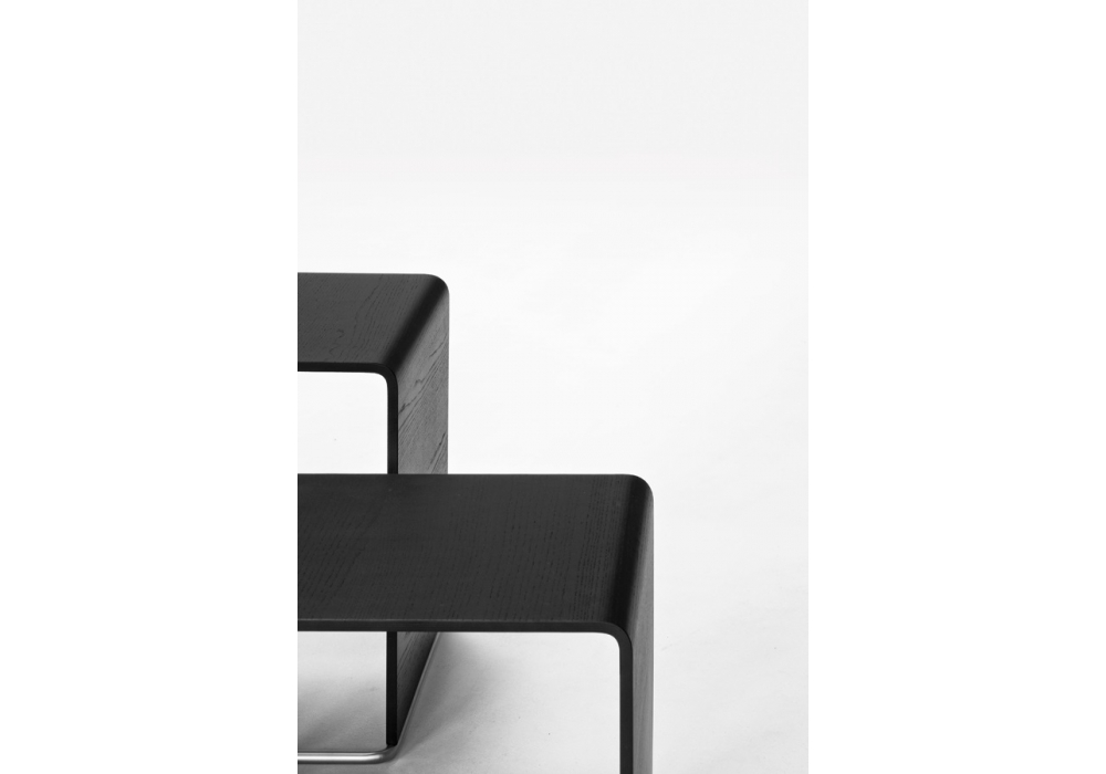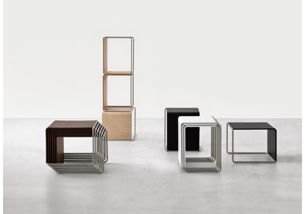 Ueno conçue par Takashi Shinozaki pour Lapalma est une table d'appoint ou petit tabouret. Structure en acier Aisi 304. Plateau/assise en plusieurs finitions. S’inspirant des tabourets des écoles japonaises, cet élément est la rencontre parfaite de la ligne et de la surface: le tube de métal se plie et rencontre le plateau plié en L. Vide et plein s’ancastrent avec une simplicité orthogonale pour créer un volume aux angles toujours arrondis, adoucis par la courbe.