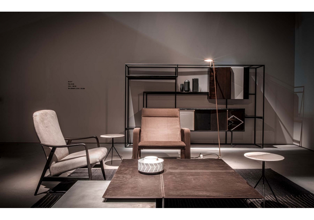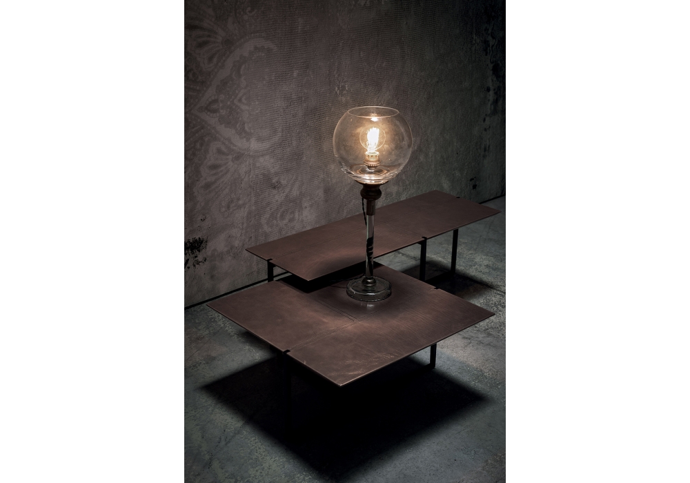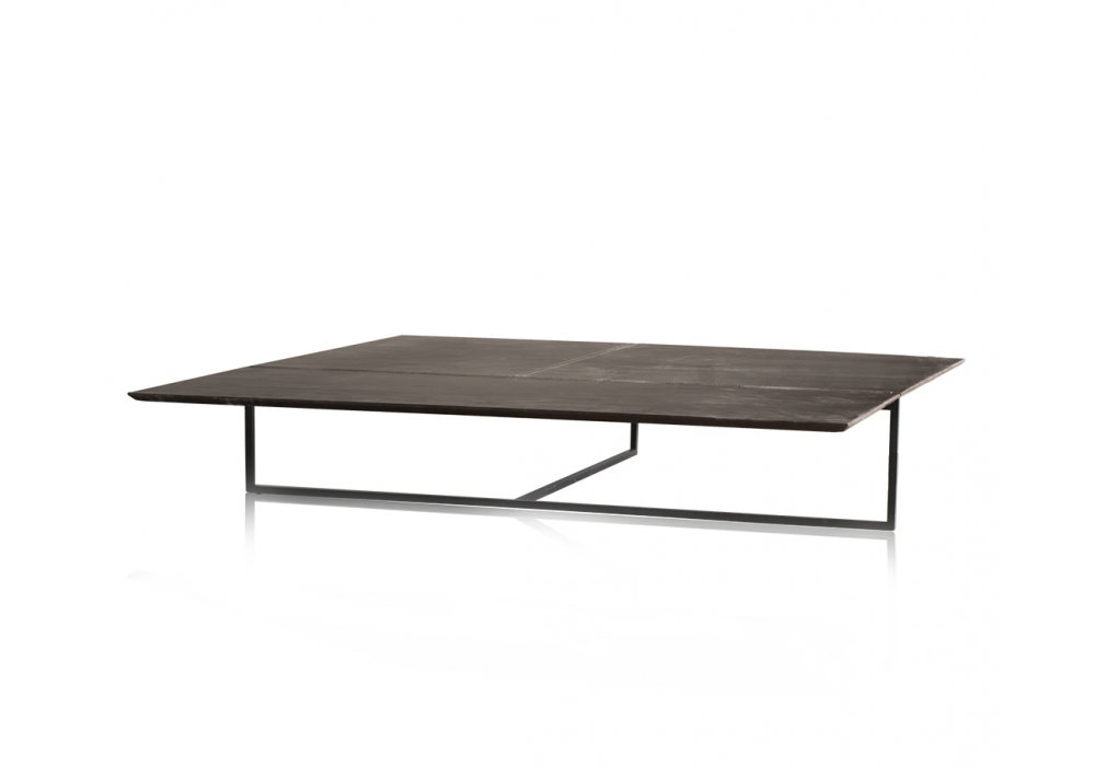 Icaro conçu par Baxter P. pour Baxter est une table basse avec base en métal verni noir mat. Plateau en MDF recouverté de cuir ou, au choix, en pierre selon la dimension.