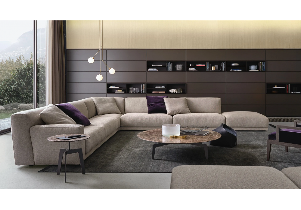 Tribeca conçue par Jean Marie Massaud pour Poliform est une table basse réalisée avec une structure en métal peint et un plateau en bois ou en marbre poli ou lisse. Disponible en différentes finitions et dimensions.
