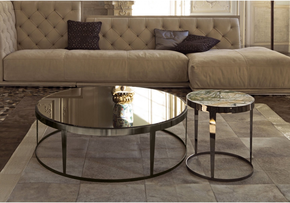 Amadeus conçue par Giuseppe Viganò pour Longhi est une table d' appoint ronde avec structure en métal rectifié avec découpe au laser et plateau en différents matériaux. Disponible en différentes dimensions et finitions.