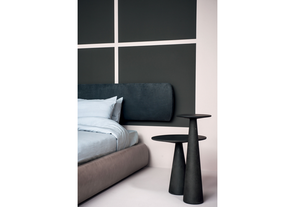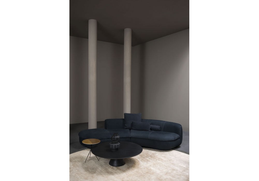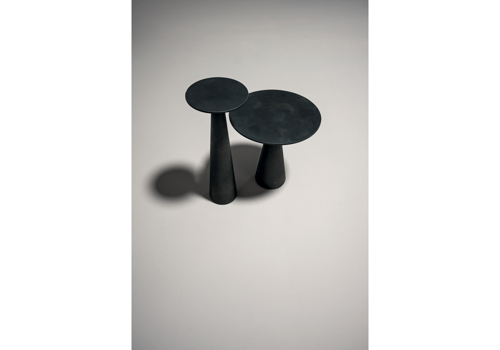 Jove conçue par Draga & Aurel pour Baxter est une collection de tables d'appoint avec structure et plateau en aggloméré de béton gris anthracite avec éclats de marbre noir ébène.
