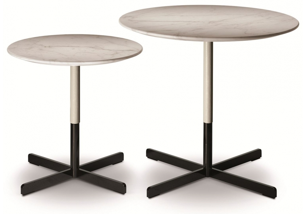 Bob conçue par Jean-Marie Massaud pour Poltrona Frau est une table d'appoint composée d'un plateau en noyer Canaletto, marbre ou recouvert de cuir Pelle Frau. Base de support de jambe et de croix en acier. Il est disponible avec un plateau rond ou carré et en différentes tailles.