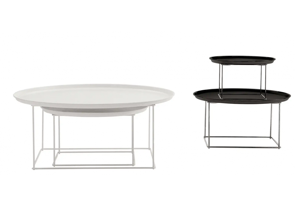 Fat-Fat, signée Patricia Urquiola pour B&B Italia, est une table d'appoint avec structure en acier chromé poli ou peint et plateau avec plateau peint en différentes finitions. Disponible en différents modèles.