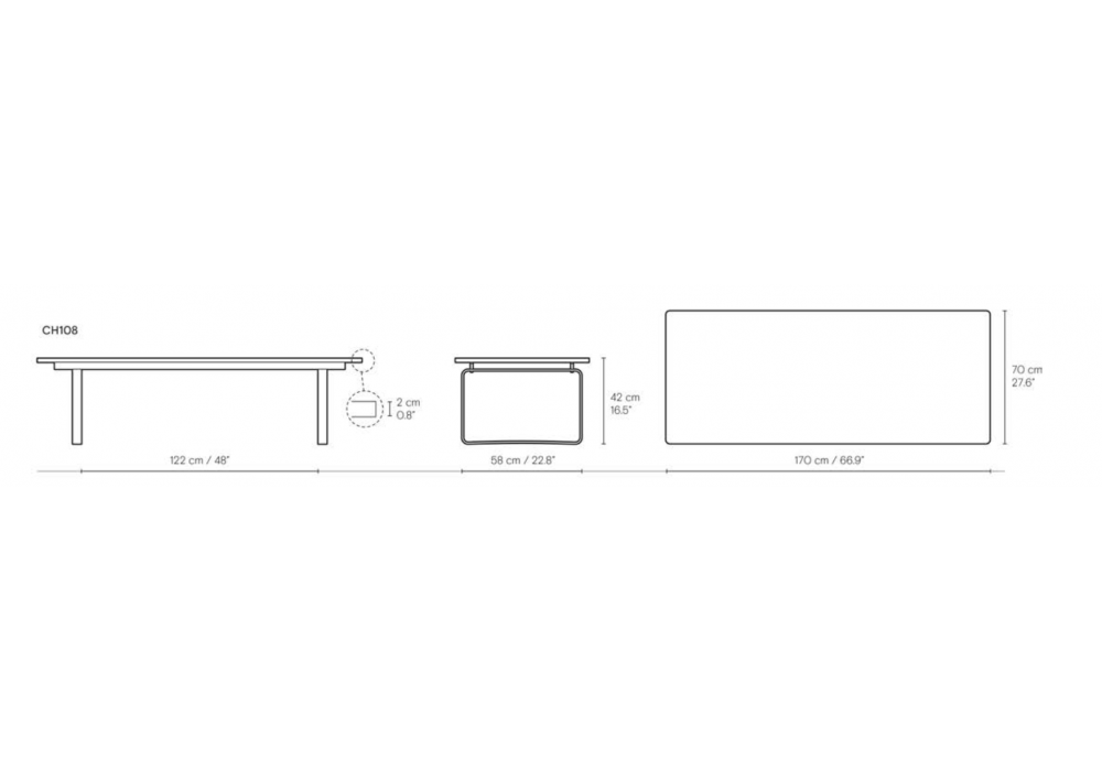 CH108 conçue par Hans J. Wegner pour Carl Hansen & Søn est une table basse avec structure en acier et plateau en verre. Élégant et intemporel, la combinaison de verre et d'acier rend la table parfaitement adaptable à les maisons et bureaux modernes.