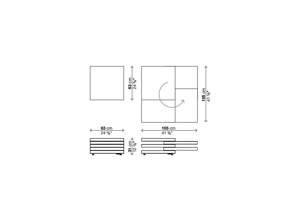| Dimensions | 63 x 63 x H 31 cm / 105 x 105 x H 31 cm |