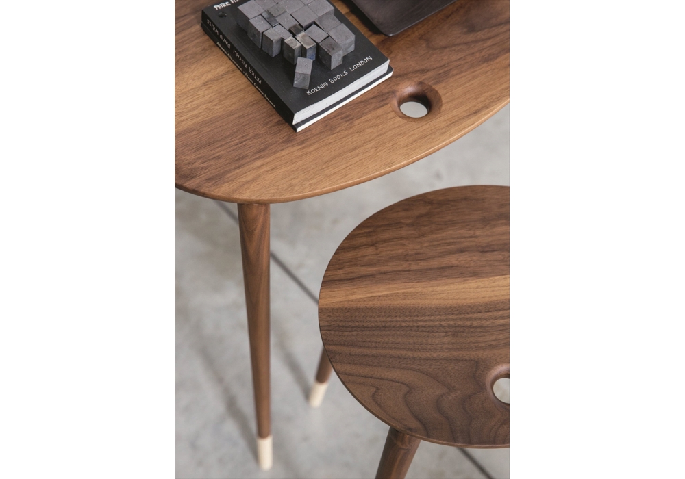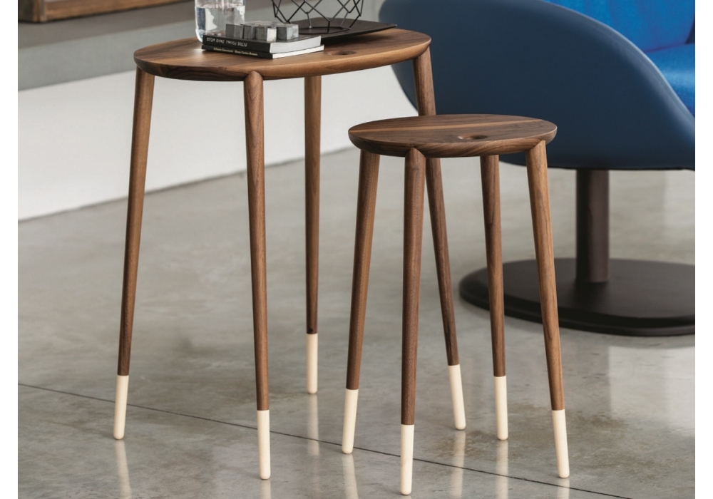 Rogers conçu par Carlo Ballabio pour Porada est un ensemble de 2 tables basses en noyer canaletta massif disponible en 2 finitions différentes avec embouts en érable naturel.
