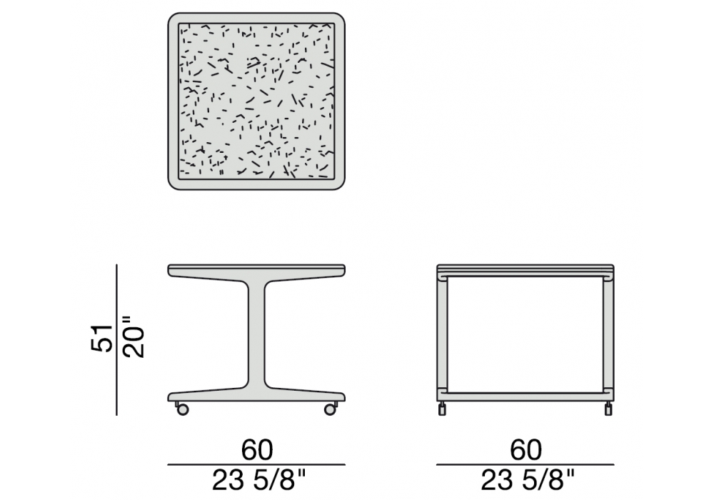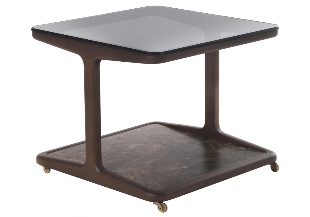 Script conçue par Emmanuel Gallina pour Porada est une table avec roulettes avec structure en frêne massif disponible en différentes finitions. Plateau inférieur en marbre et plateau supérieur en verre trempé fumé avec angles arrondis (épaisseur mm.10).