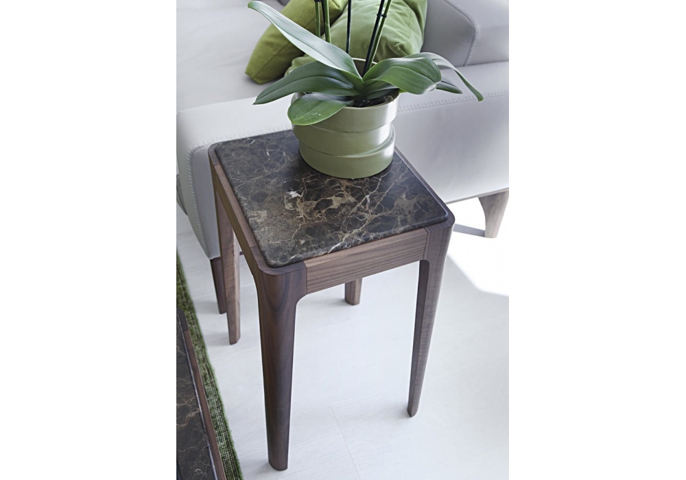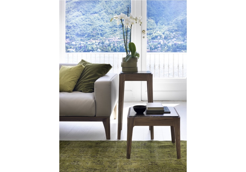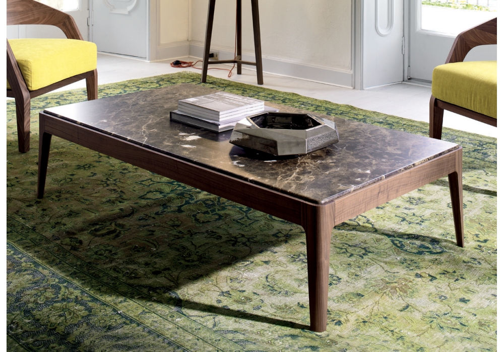 Ziggy conçue par Carlo Ballabio pour Porada est une table basse avec structure en noyer canaletta massif disponible en différentes finitions. Plateau en marbre, bois ou verre dépoli rétro verni. Disponible en différentes dimensions.
