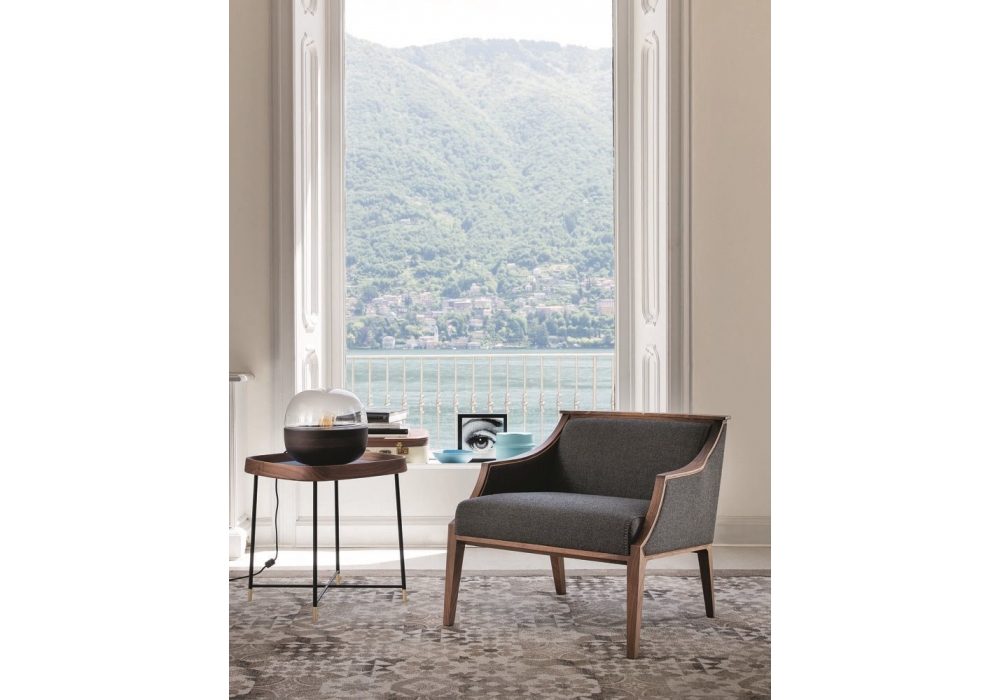 Fritz conçue par Carlo Ballabio pour Porada est une table d'appoint avec structure en métal opaque noir avec pieds en laiton brossé. Plateau en noyer canaletta massif ou laqué brillant disponible en différentes finitions. Cadre du plateau en noyer canaletta massif. Disponible en différentes dimensions.