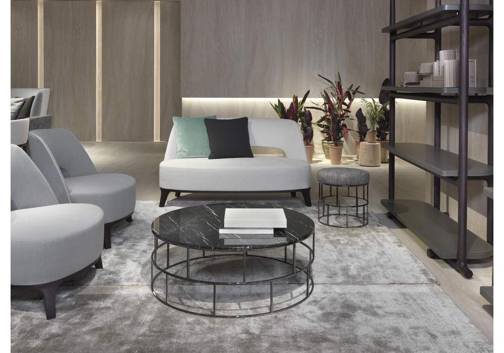 Riviera conçue par Roberto Lazzeroni pour Flexform est une table basse de la collection Mood. Structure en métal disponible en différentes finitions. Plateau en bois laqué ou en marbre en différentes finitions. Disponible en cinq dimensions.