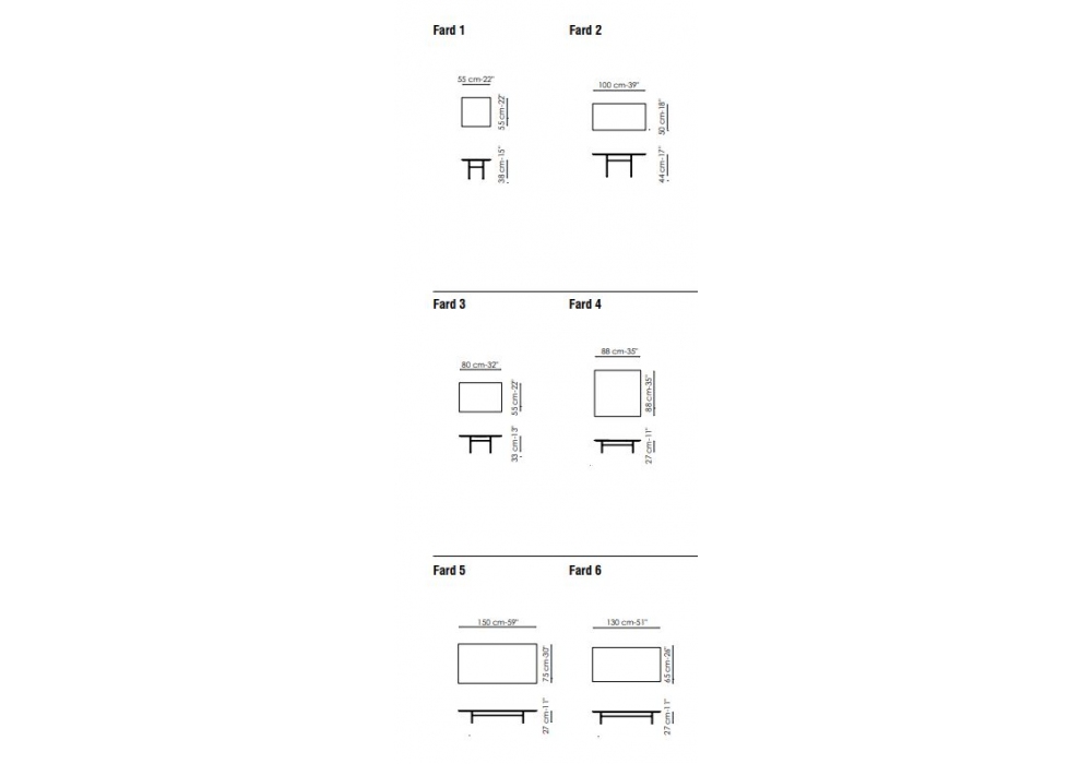 Fard est une table basse conçue par Giuseppe Viganò pour Bonaldo. La structure de la table basse est en acier peint et plaqué ou en bois biomalta. Disponible en différentes tailles.