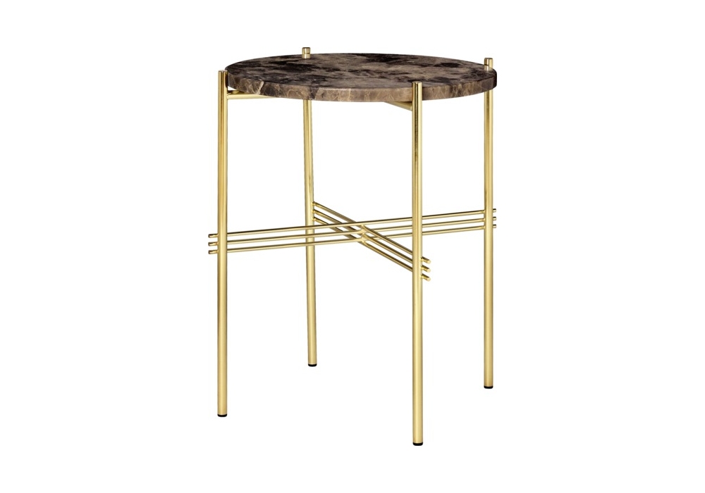 Ts conçue par GamFratesi pour Gubi est une table d'appoint ronde réalisée avec structure en métal et plateau en marbre. Disponible en différentes finitions et dimensions.