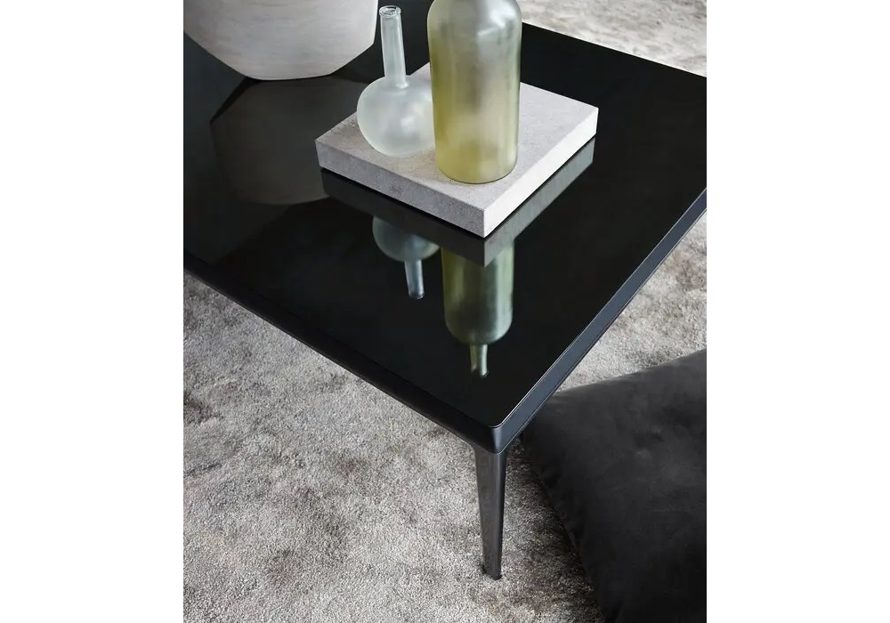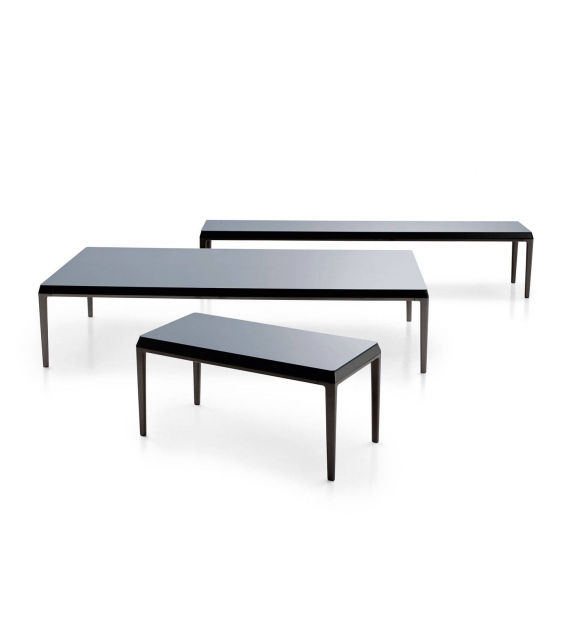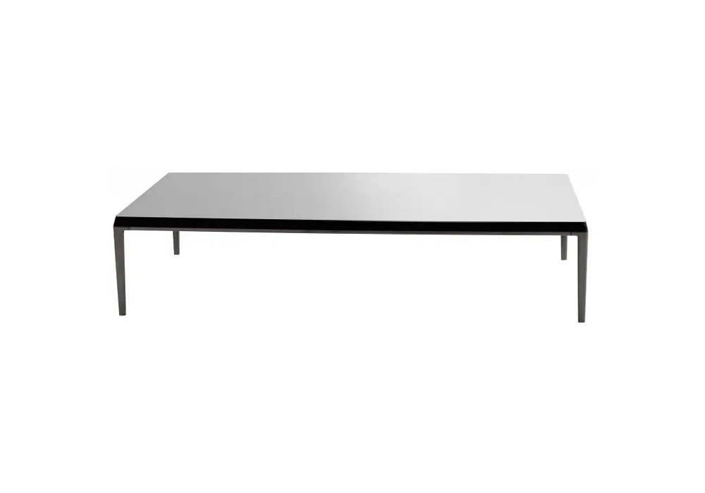 Michel conçue par Antonio Citterio pour B&B Italia, est une table basse avec une structure en aluminium moulé et extrudé et un plateau en verre réfléchissant peint en bronze. Disponible en différentes dimensions et finitions.