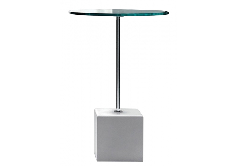 Axo conçue par Cà Nova Design pour Cattelan Italia est une table basse avec base carrée en acier peint blanc ou noir et tige chromé. Plateau rond en verre clair. Disponible en différentes dimensions.